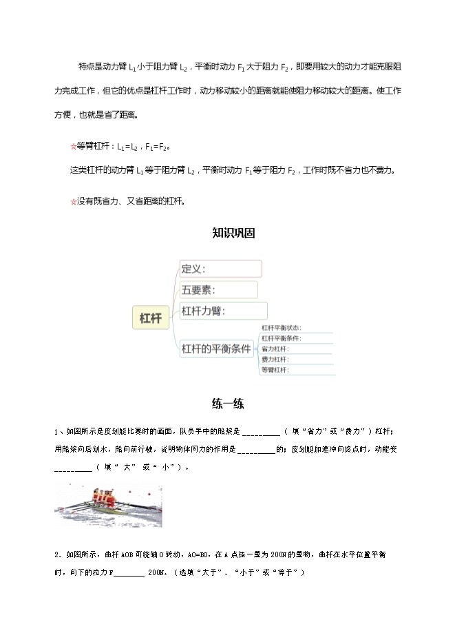 12.1 杠杆—2020-2021人教版八年级物理下册复习学案