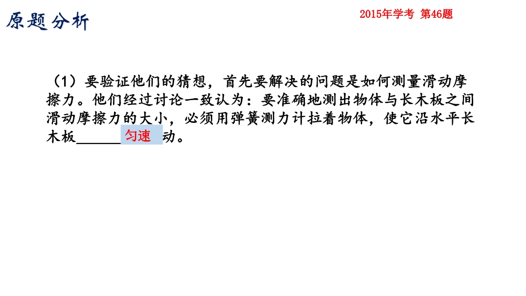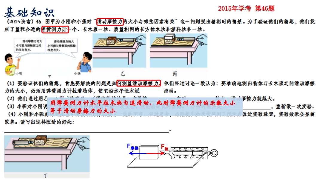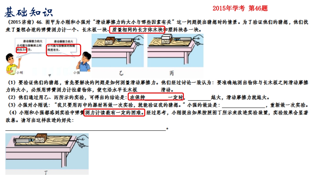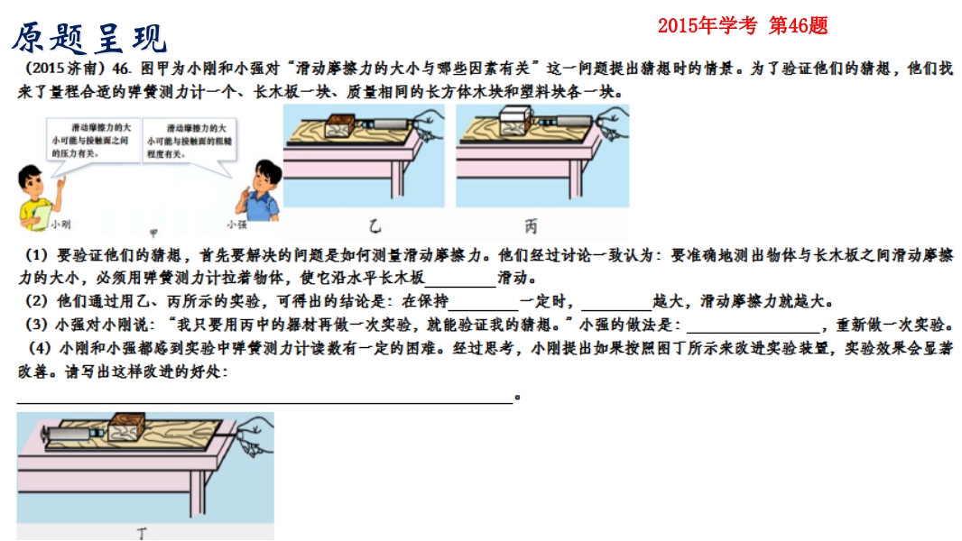 山东济南中考物理二轮专题复习:“一题一课”系列-力学实验题(2015-46)课件(共21张PPT)
