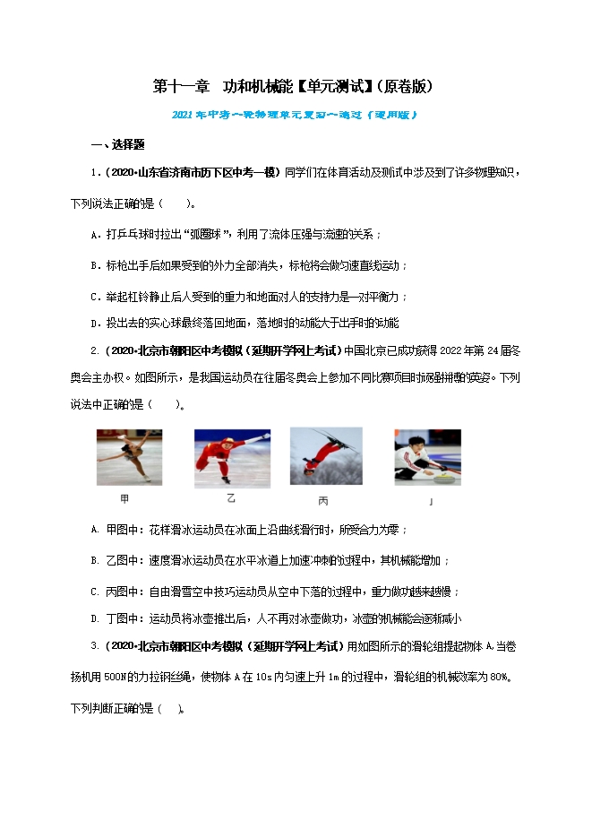 第十一章 功和机械能--2021年中考物理第一轮单元复习一遍过(综合备课+真题训练+单元测试)