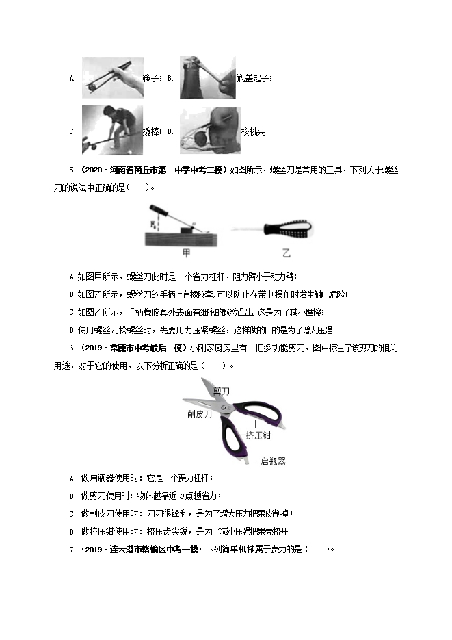 - 407全国各省市三年(2019-2021)中考物理真题分类汇编:08 简单机械(原卷版和解析版)