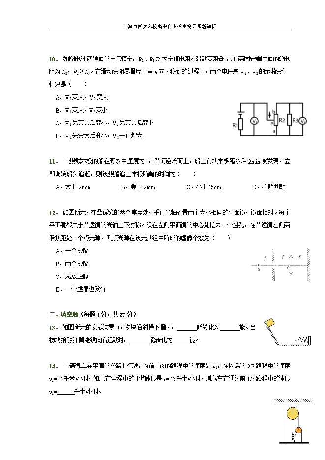 上海市四大名校高中自主招生物理真题解析:第3讲(原卷版和解析版)