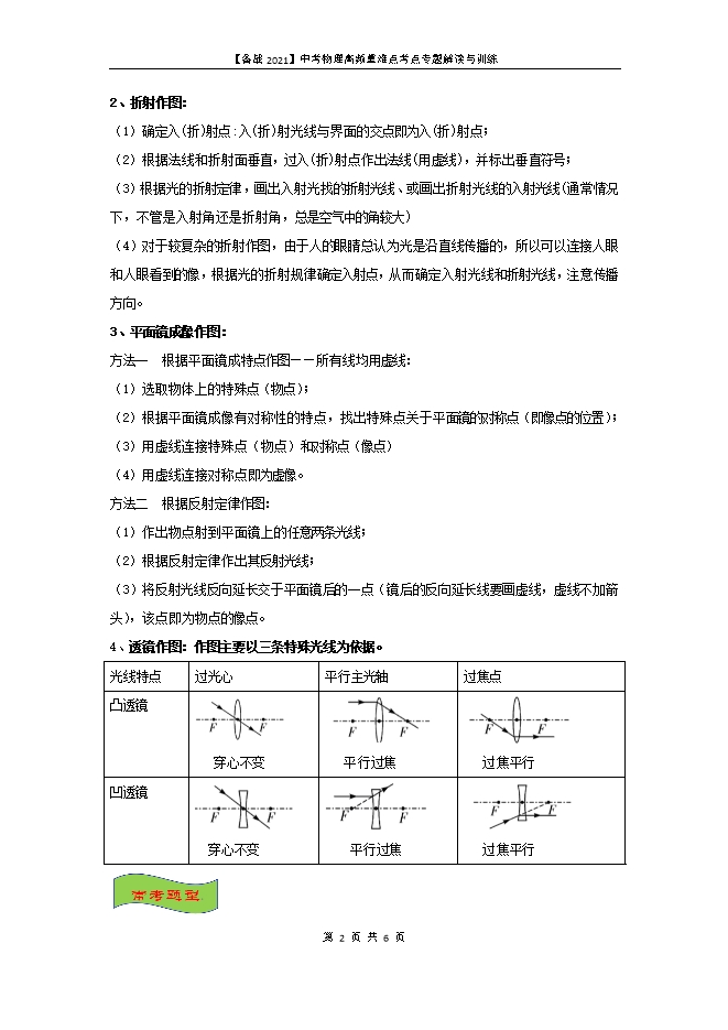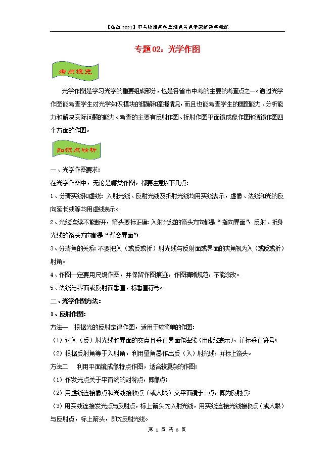 专题02 光学作图--【备战2021】中考物理高频重难点考点专题解读与训练(原卷版和解析版)
