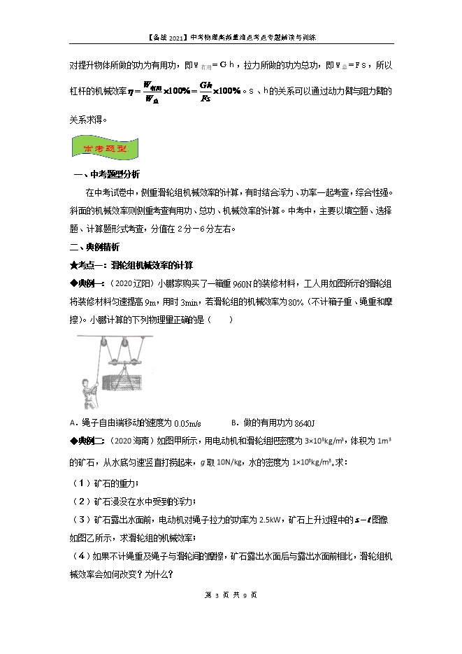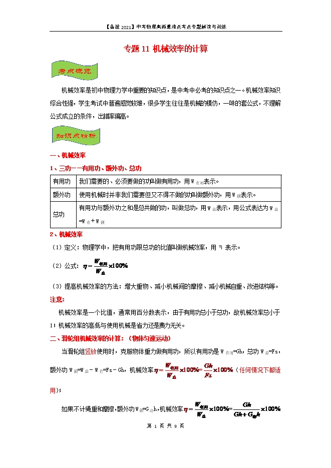 专题11 机械效率的计算--【备战2021】中考物理高频重难点考点专题解读与训练(原卷版和解析版)