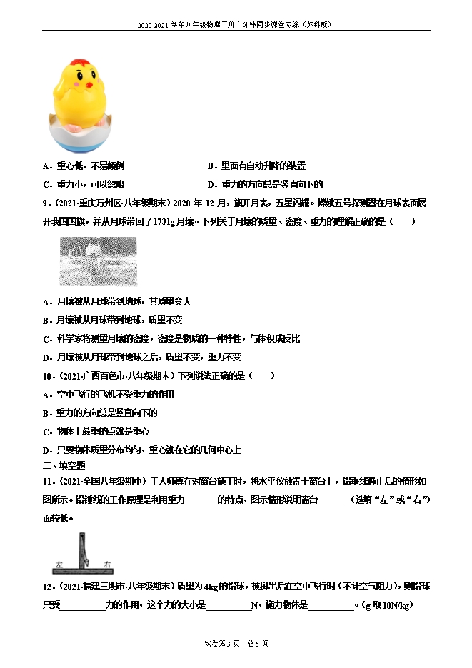 8.2 重力 力的示意图(基础练)-2020-2021学年八年级物理下册十分钟同步课堂专练(苏科版)
