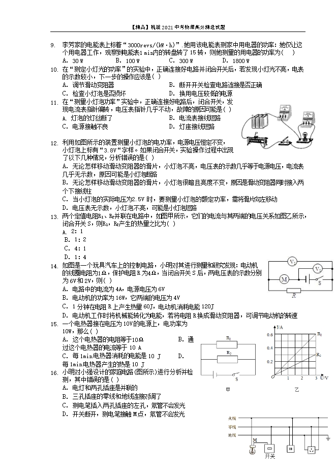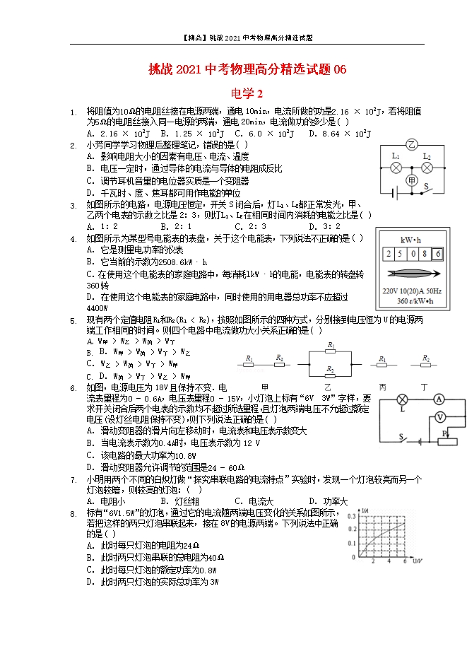 【精品】挑战2021中考物理高分精选试题:06 电学2(原卷版和解析版)