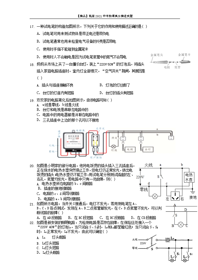 - 290专题三 电学1--2021年中考物理审题能力及阅读能力专练(解析版和原卷版)
