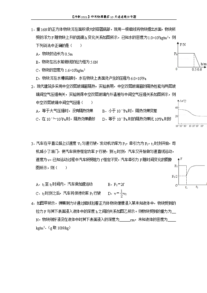 【冲刺2021】中考物理最后10天速速提分专题:07 坐标图像题(原卷版和解析版)