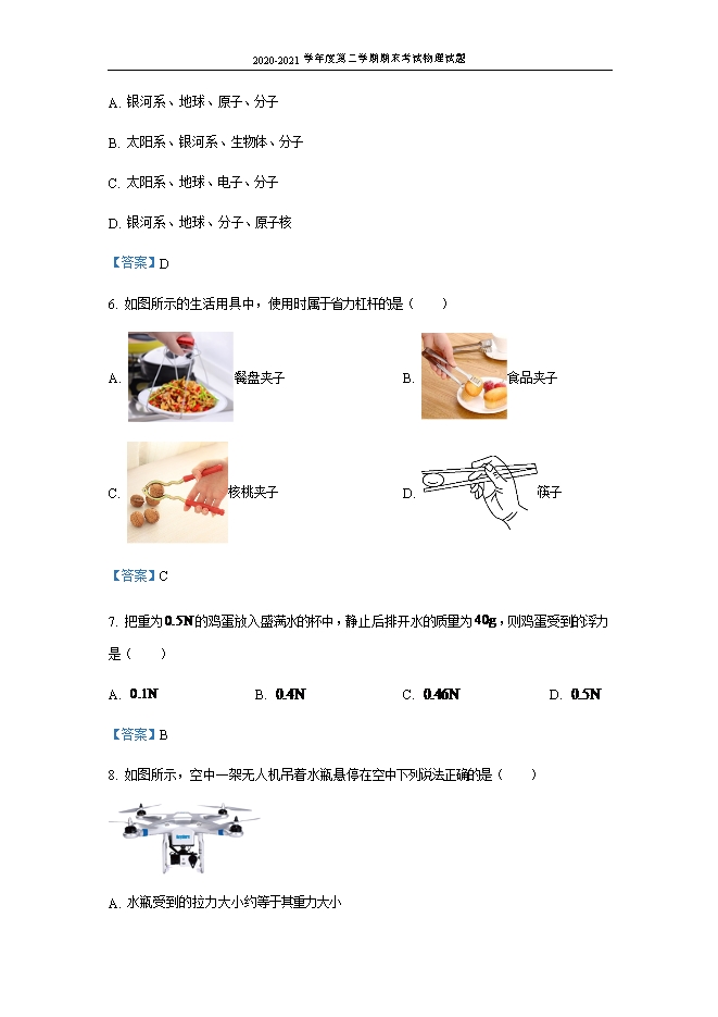 所属专辑: 【精品】2020-2021学年各版本八年级物理下学期期末测试卷