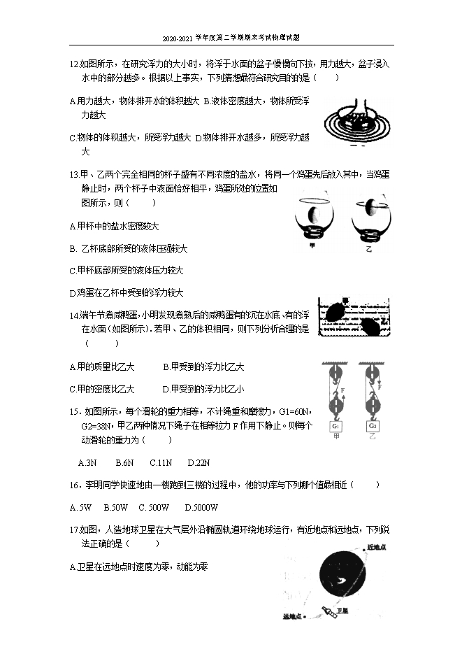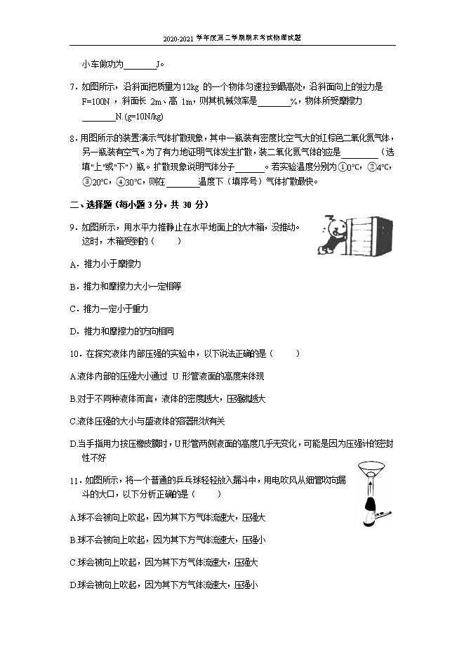 所属专辑: 【精品】2020-2021学年各版本八年级物理下学期期末测试卷
