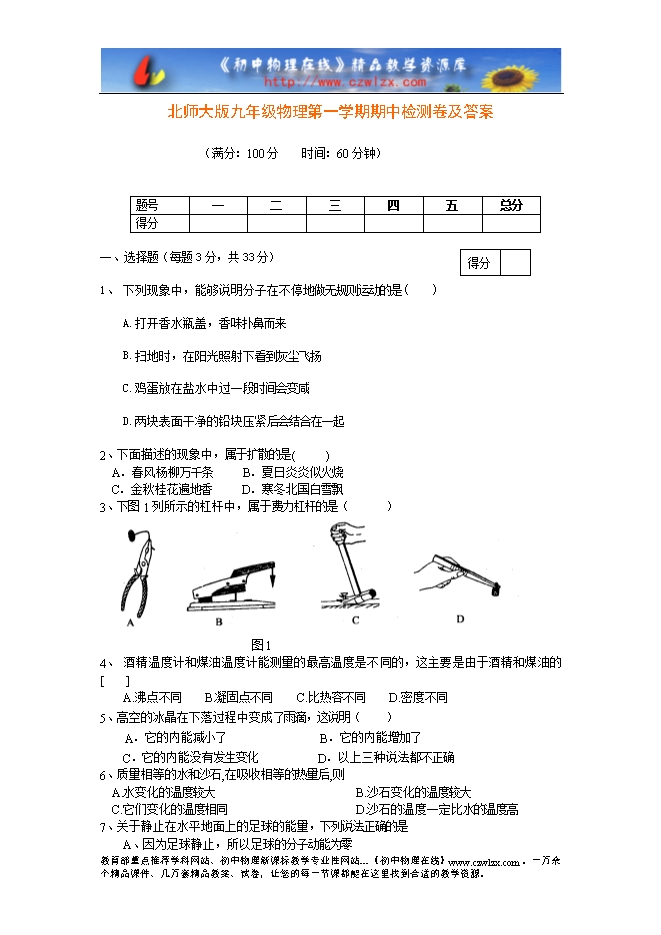 - 下一份试卷:景泰三中2011-2012学年度第一学期九年级物理期中试卷及答案
