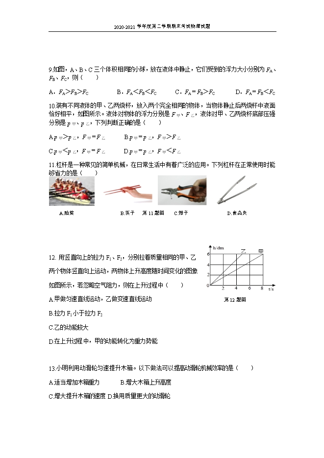 所属专辑: 【精品】2020-2021学年各版本八年级物理下学期期末测试卷