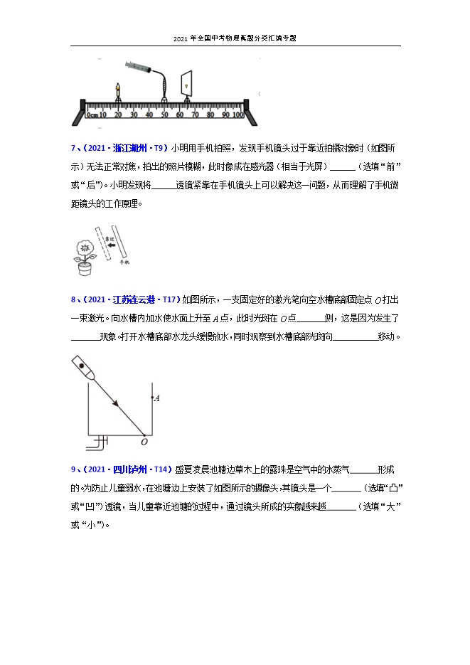 2021年全国中考物理真题分类汇编专题:03 透镜及其应用(配解析)