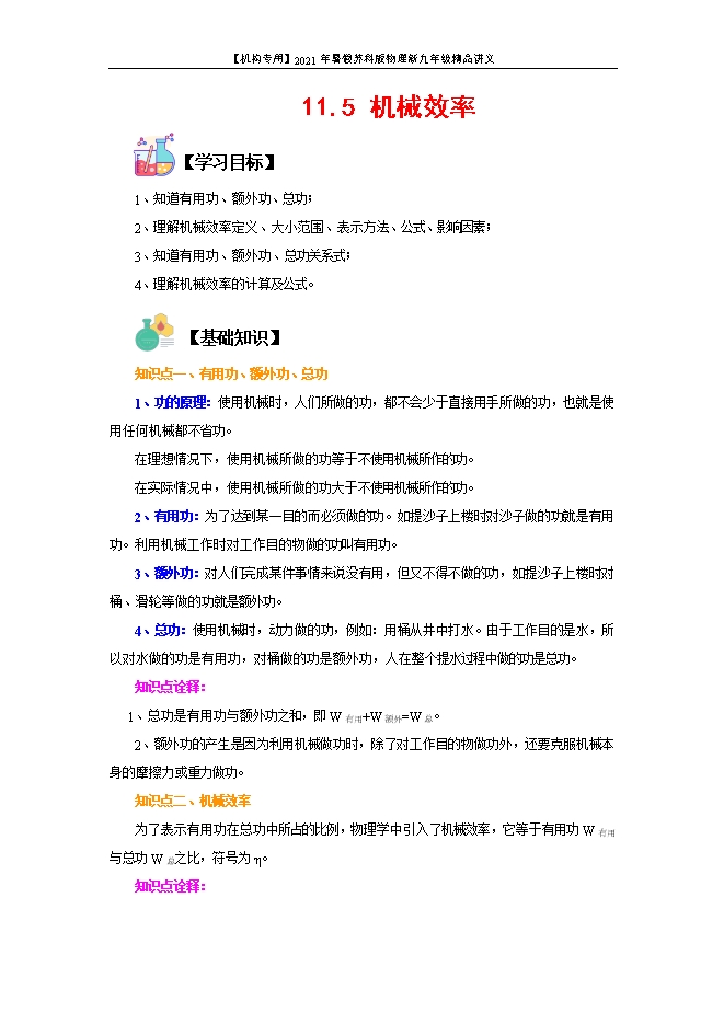 11.5 机械效率--【机构专用】2021年暑假苏科版物理新九年级精品讲义(教师版和学生版)