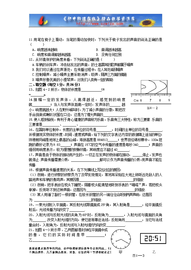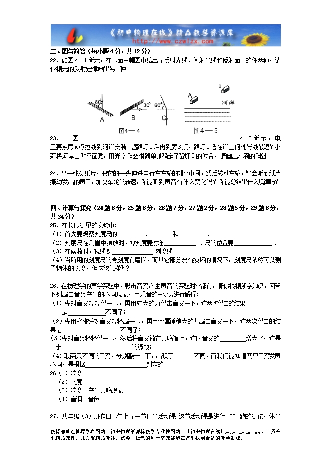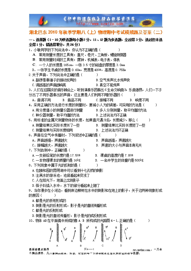 湖北巴东2010年秋季学期八(上)物理期中考试模拟题及答案(二)