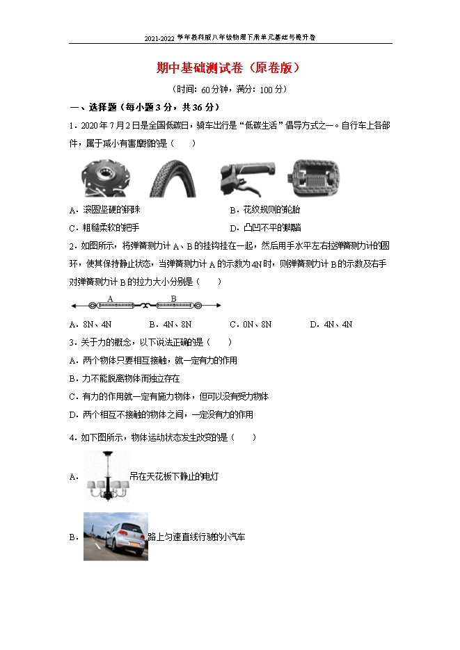 2021-2022学年教科版八年级物理下册单元基础与提升卷:期中基础测试卷(原卷和解析版)