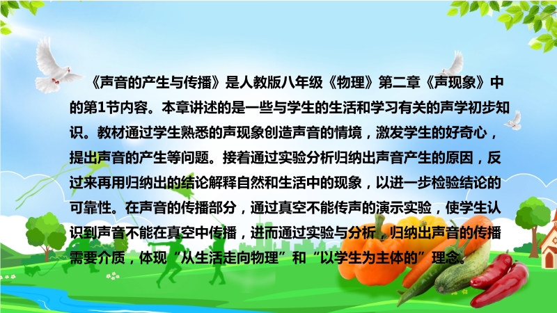 【内容简介】2023-2024学年人教版初中物理八年级上册《2.1声音的产生与传播》说课课件1