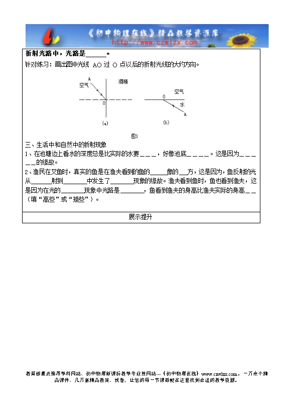 课题 3.4 探究光的折射规律 课型 预习展示 班级