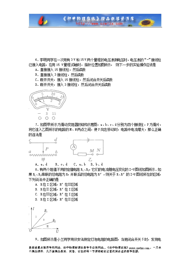5、击剑比赛中,当甲方运动员的剑(图中用“S甲”表示)击中乙方的导电服时,电路导通,乙方指示灯亮。下面能反映这种原理的电路是