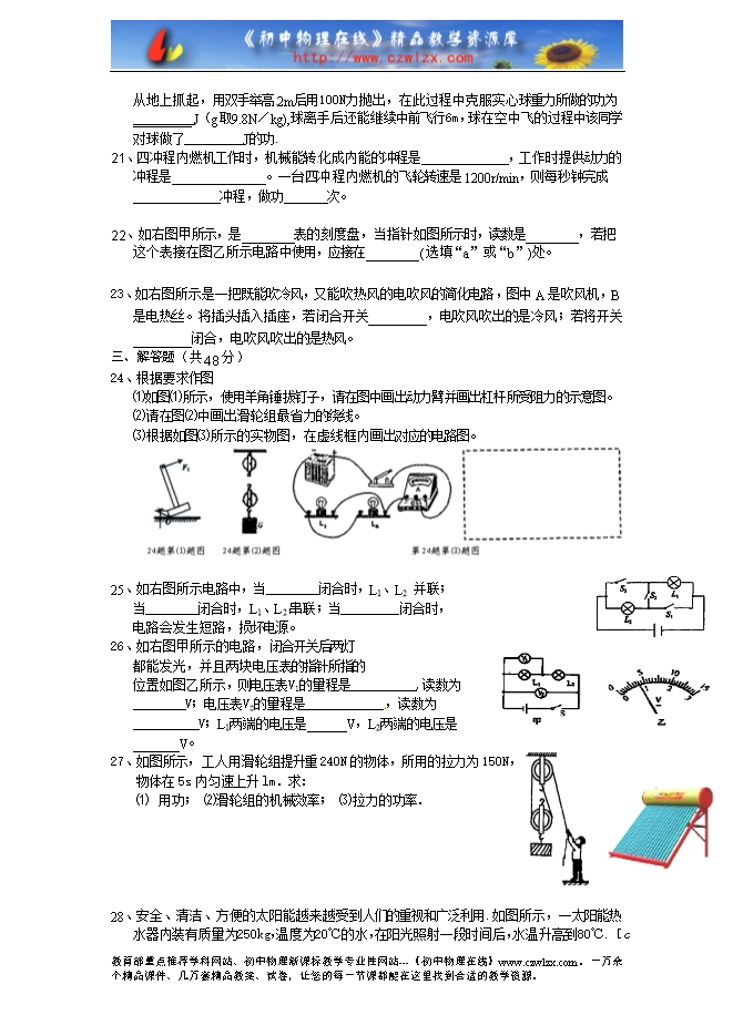 6、中考体育跳绳项目测试中,小明同学在lmin内跳了1 20次,则他跳绳时的功率大约是