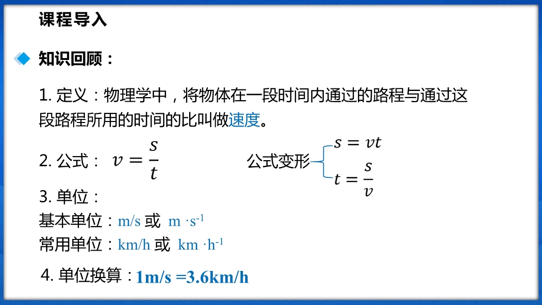 【内容简介】1.2 快与慢 第2课时--2024-2025学年物理沪科版八年级全一册课件