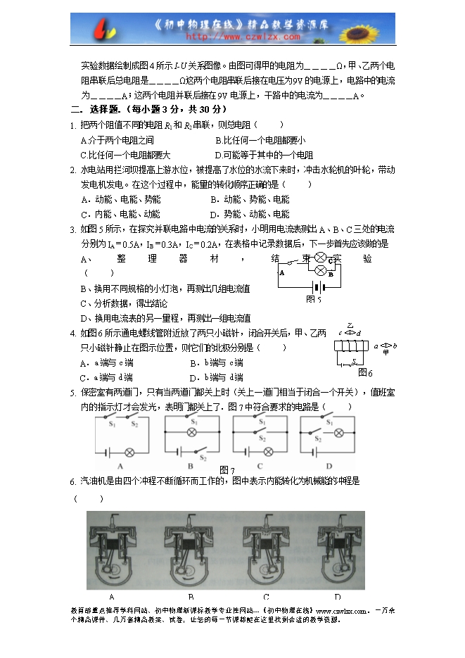 4. 请将下列电器与其相应的原理序号对应起来:①电流的磁效应;②电磁感应;③磁场对电流的作用。a.发电机____;b.电动机____;c.电磁铁____;d.电铃____。