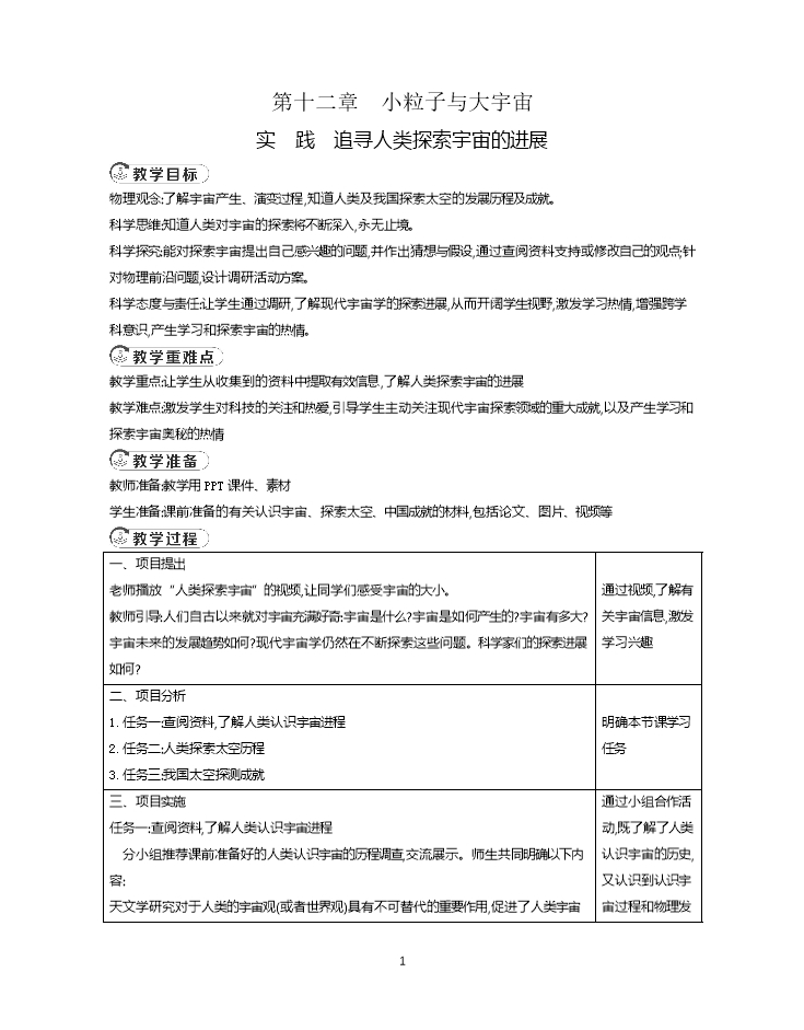 第十二章 小粒子与大宇宙 实践 追寻人类探索宇宙的进展--2024新沪科版物理八年级下学期科学素养新教学设计(附教学反思)