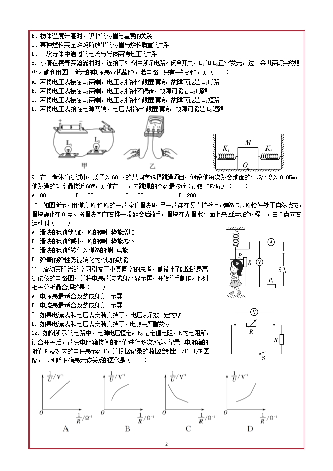 - 上一份试卷:2025-2026学年苏科版物理九年级上册阶段素能测评卷:第11章 简单机械和功 至 第12章 机械能和…