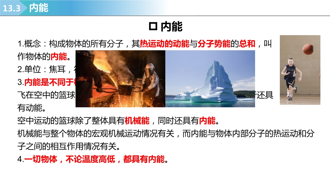 【内容简介】2025-2026学年新人教版九年级上学期物理课件:13.3内能