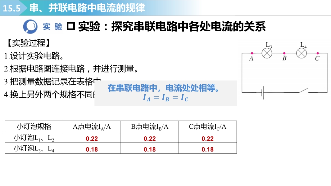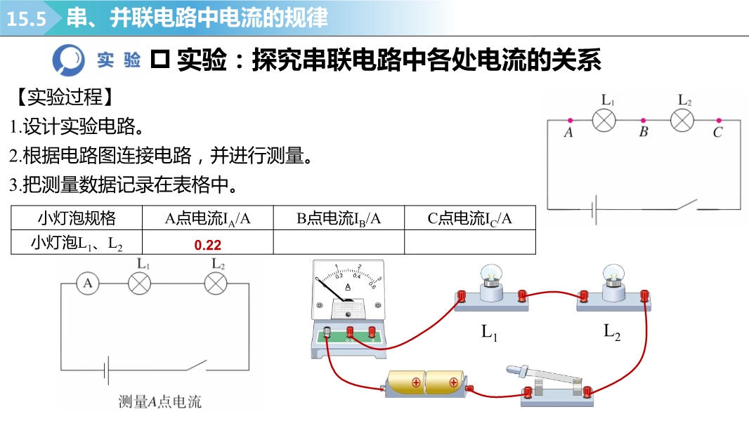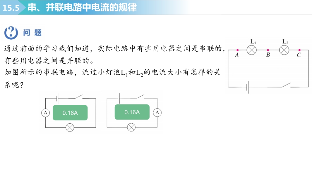 【内容简介】2025-2026学年新人教版九年级上学期物理课件:15.5串、并联电路中电流的规律