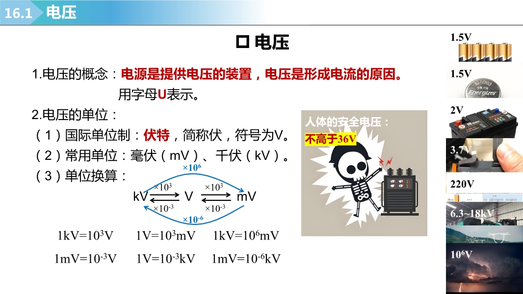 【内容简介】2025-2026学年新人教版九年级上学期物理课件:16.1电压