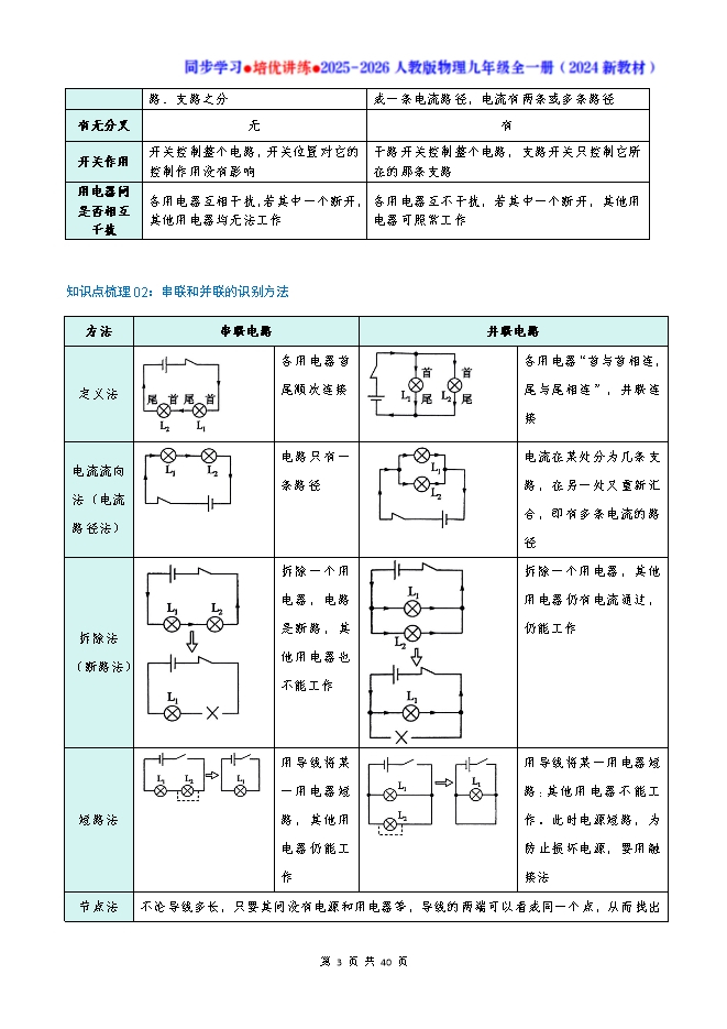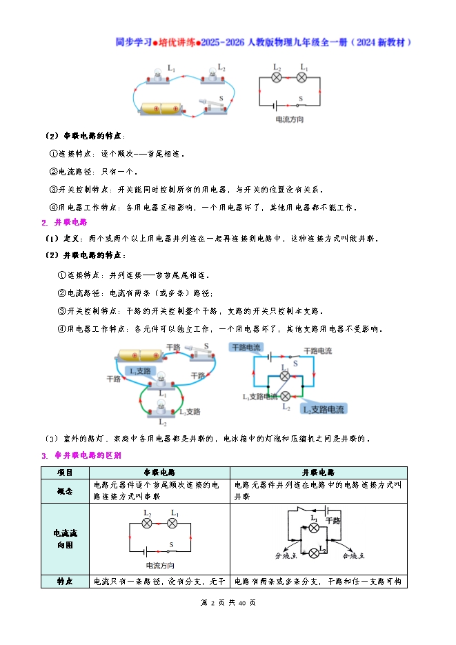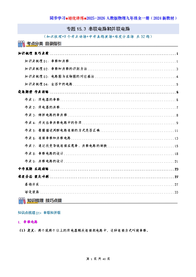 专题15.3 串联电路和并联电路--2025-2026人教版物理九年级全一册同步学习 培优讲练:知识梳理+考点讲练+中考真题演练+难度分层(试题版和答案版)