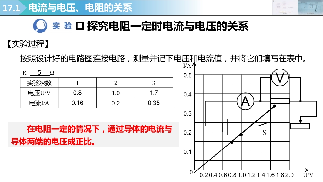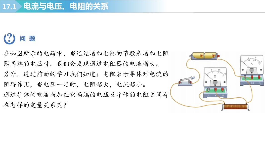 【内容简介】2025-2026学年新人教版九年级上学期物理课件:17.1电流与电压、电阻的关系