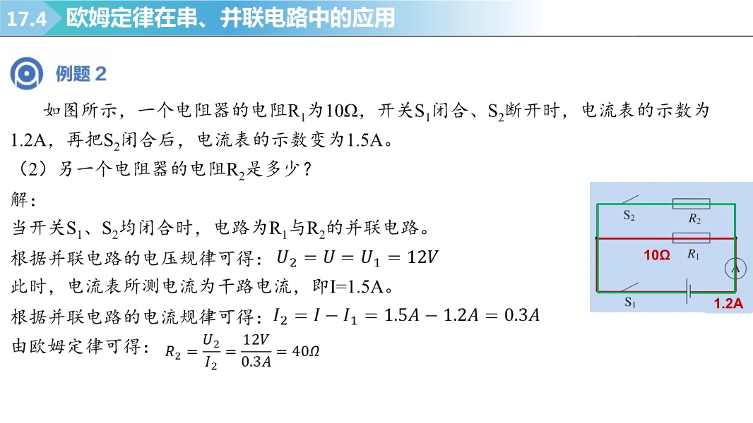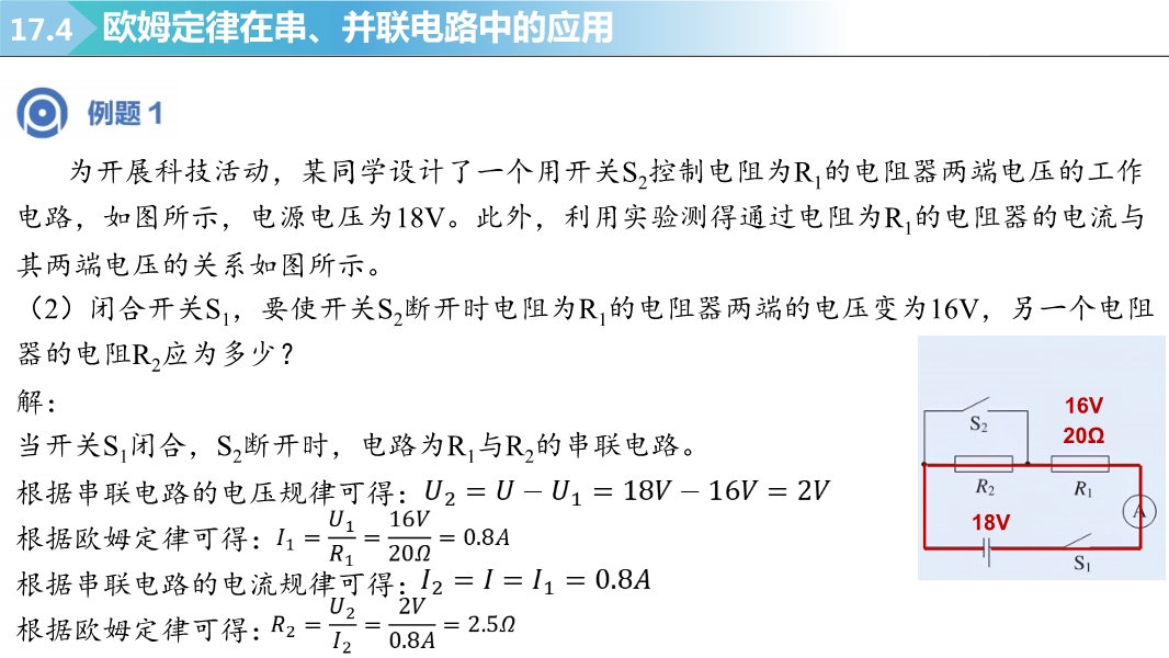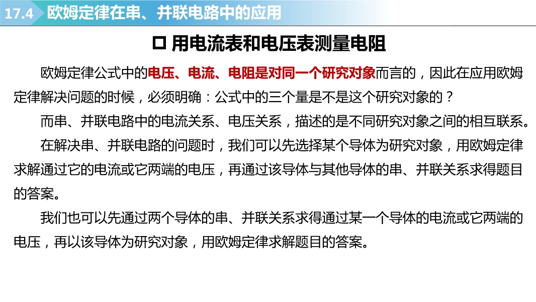【内容简介】2025-2026学年新人教版九年级上学期物理课件:17.4欧姆定律在串、并联电路中的应用