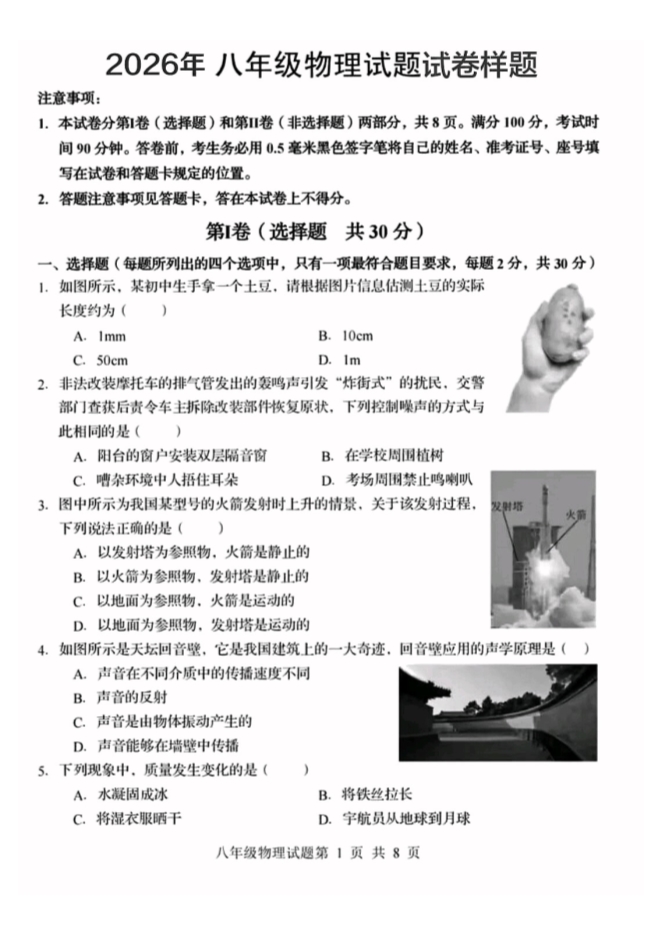 北京市顺义区2025-2026学年八年级上学期期末物理试卷(pdf版无答案)