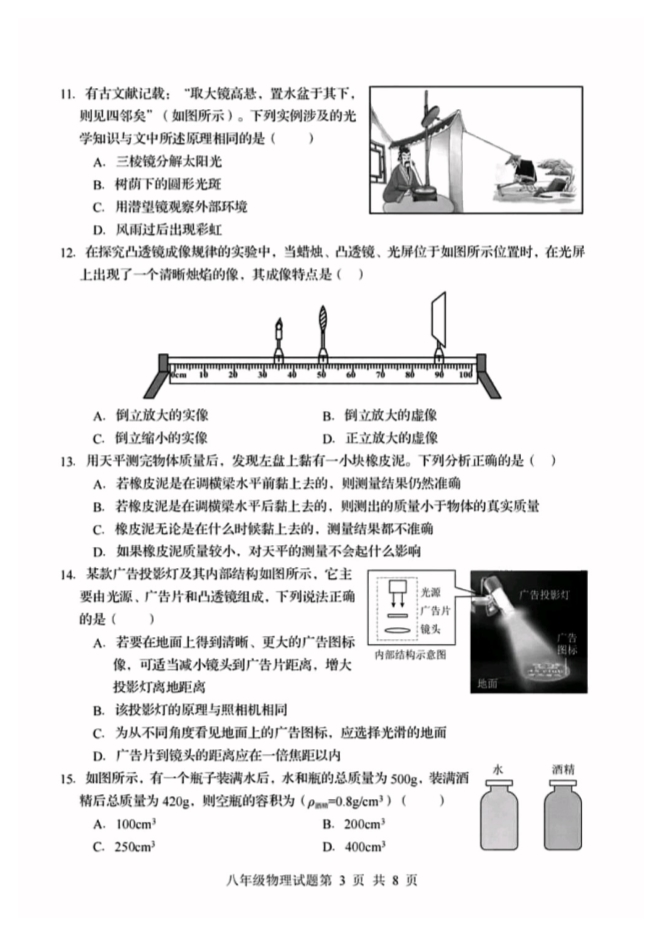 - 122北京市人大附中2025-2026学年八年级上学期期末物理试卷(pdf版无答案)