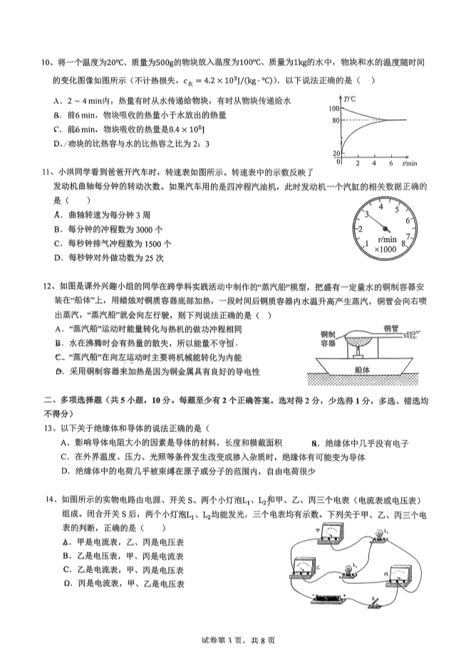 北京市人大附中2025-2026学年八年级上学期期末物理试卷(pdf版无答案)