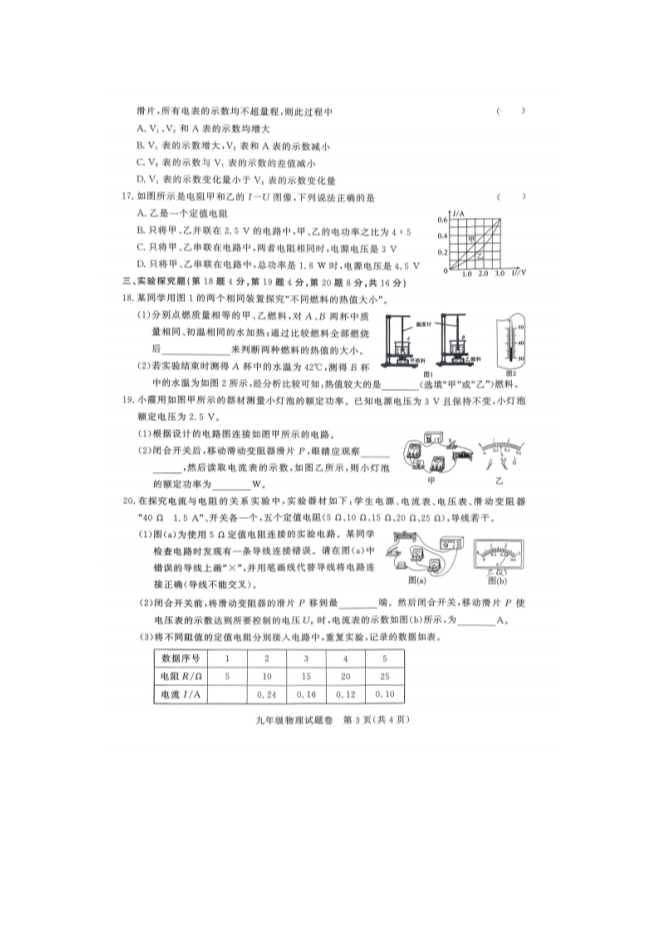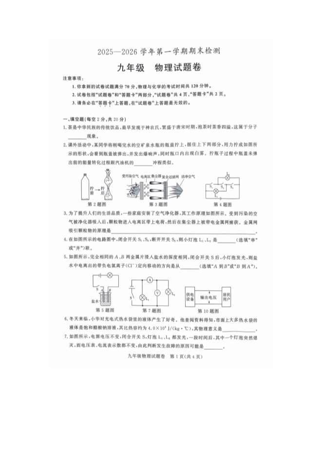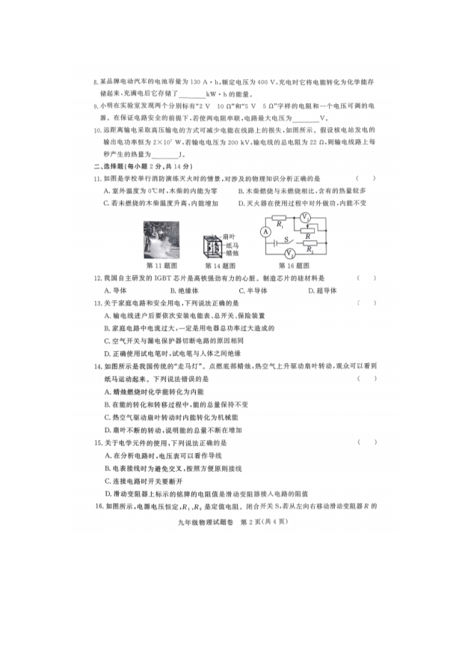 【内容简介】安徽省滁州市凤阳县2025-2026学年九年级上学期2月期末物理试题(扫描版有答案)