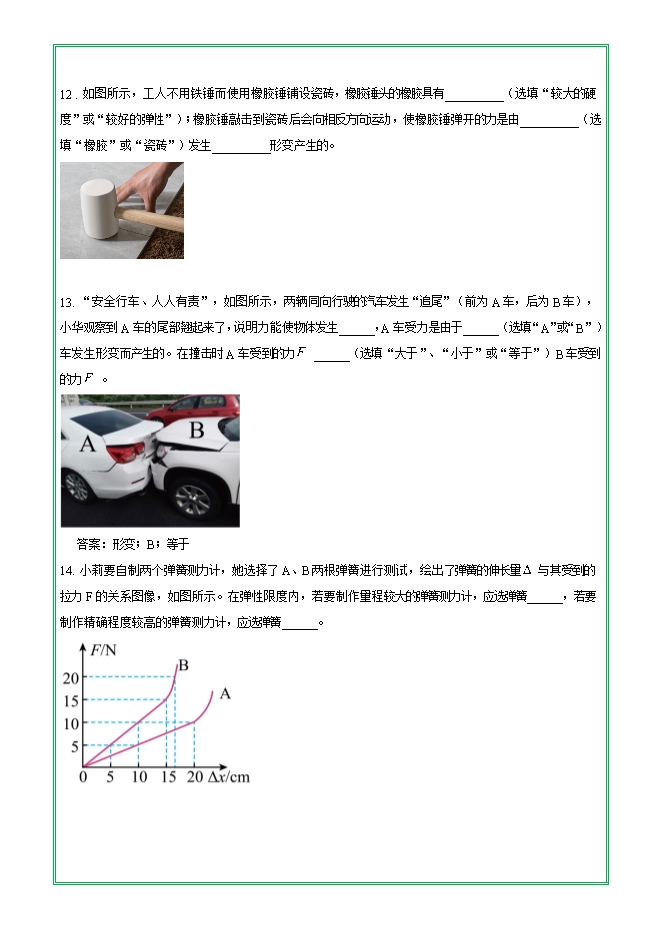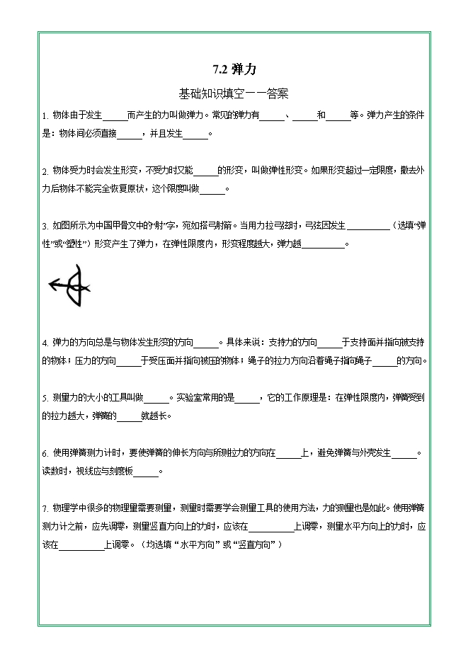 【内容简介】第七章 第二节 弹力—2025-2026学年人教版物理八年级下学期预习基础知识填空(附答案)