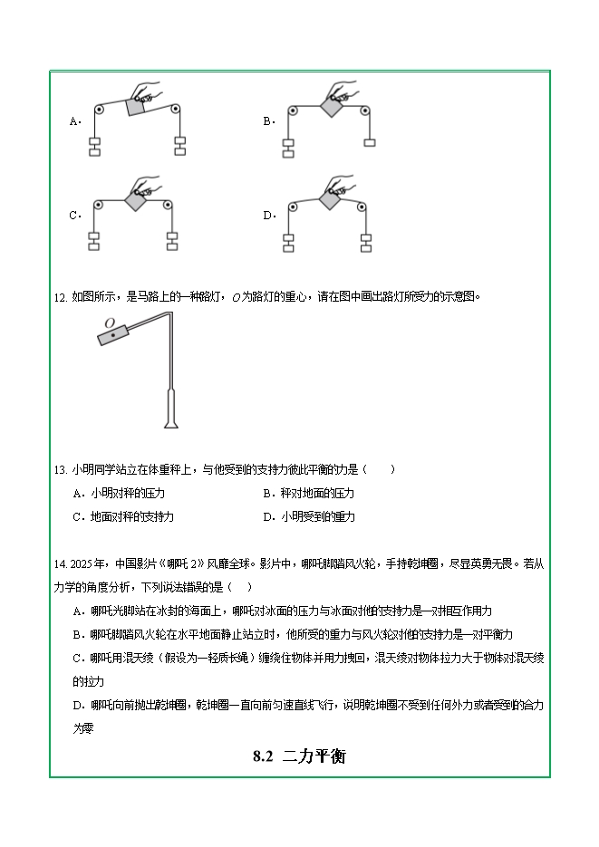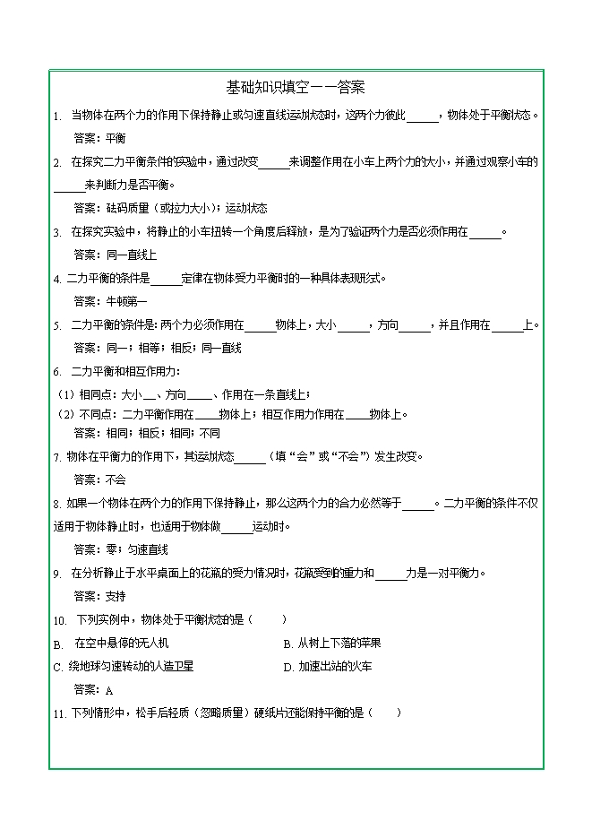 第八章 第二节 二力平衡—2025-2026学年人教版物理八年级下学期预习基础知识填空(附答案)