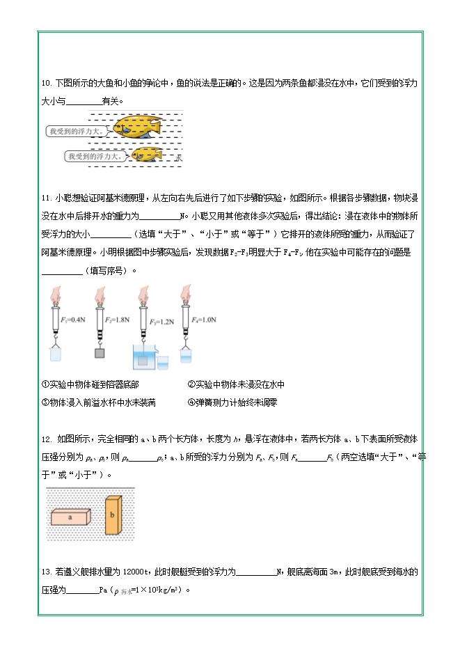 【内容简介】第十章 第二节 阿基米德原理—2025-2026学年人教版物理八年级下学期预习基础知识填空(附答案)