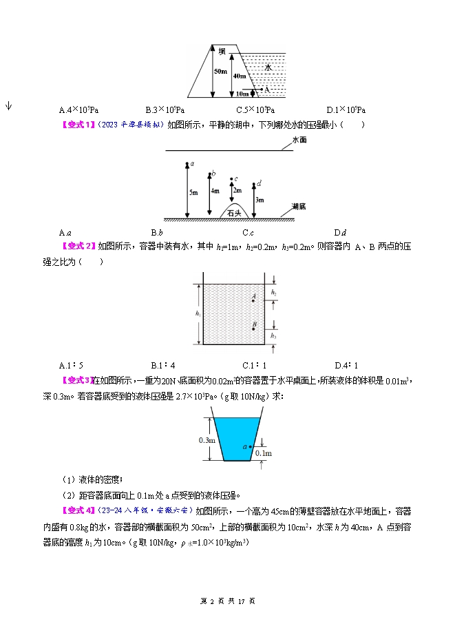 【内容简介】2026年中考物理模型与方法强化重难点专题训练:专题5.液体压强模型(学生版和教师版)