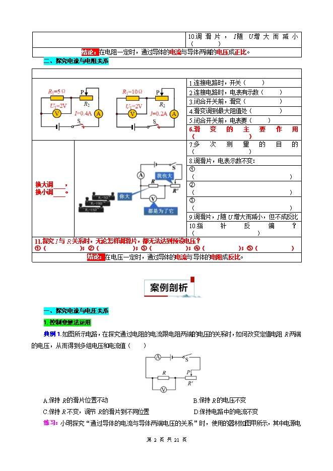 2026年中考物理模型与方法强化重难点专题训练:专题16.探究电流与电压、电阻的关系(学生版和教师版)
