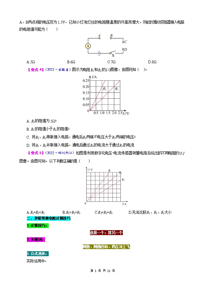 2026年中考物理模型与方法强化重难点专题训练:专题19.等效电阻与串联分压、并联分流原理(学生版和教师版)