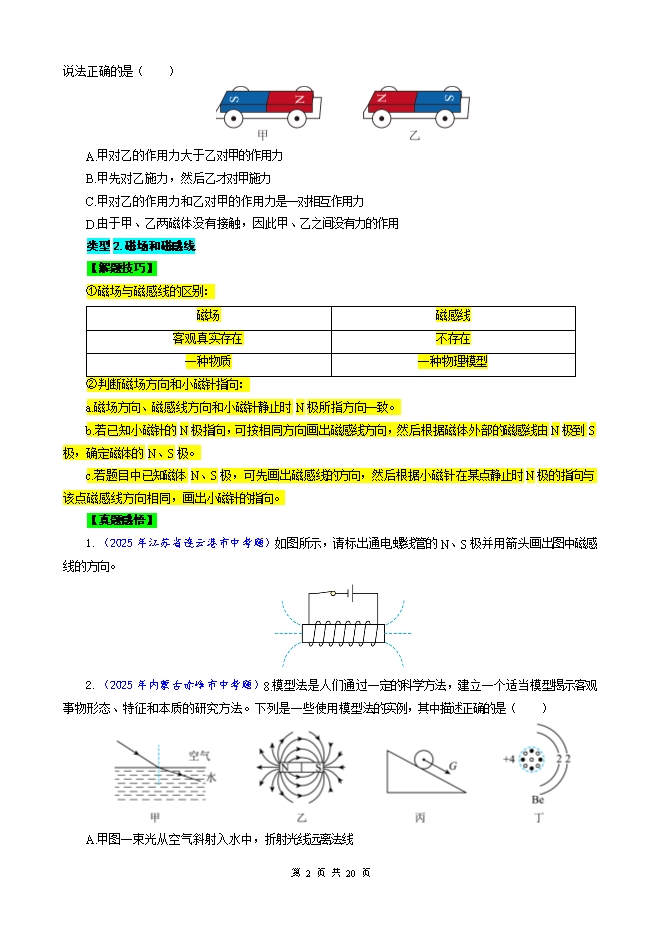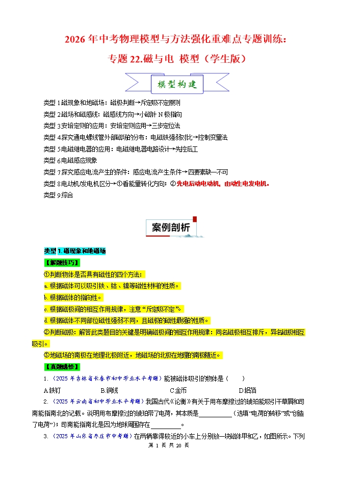 2026年中考物理模型与方法强化重难点专题训练:专题22.磁与电 模型(学生版和教师版)