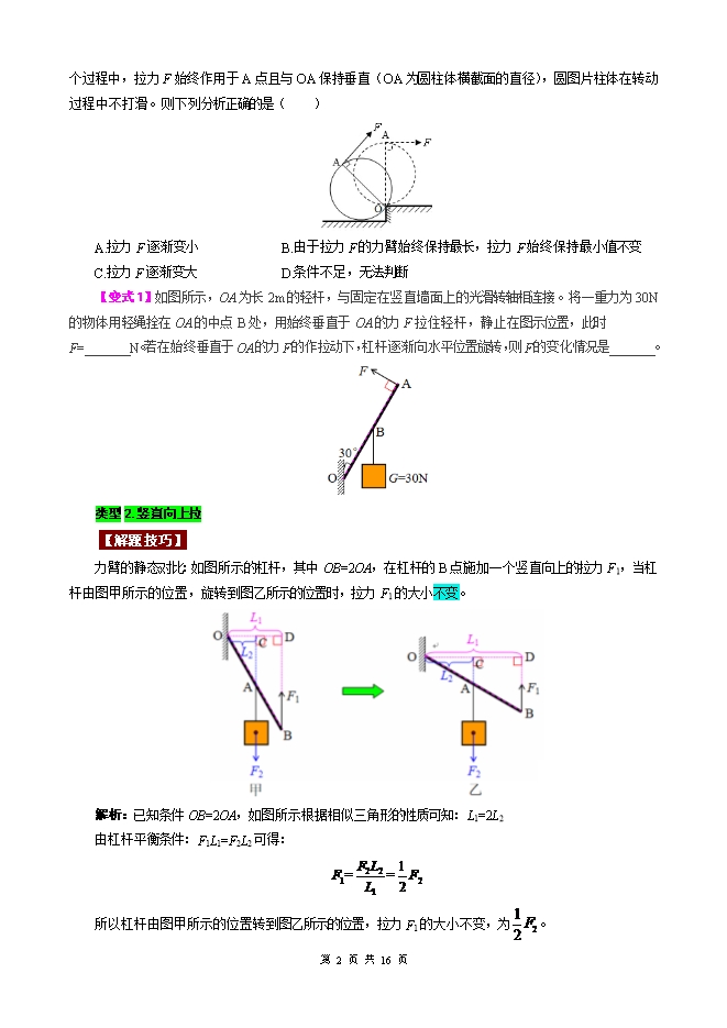 - 82026年中考物理模型与方法强化重难点专题训练:专题34.杠杆模型(一)(学生版和教师版)