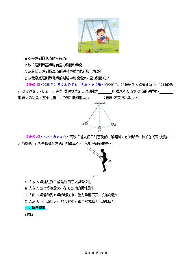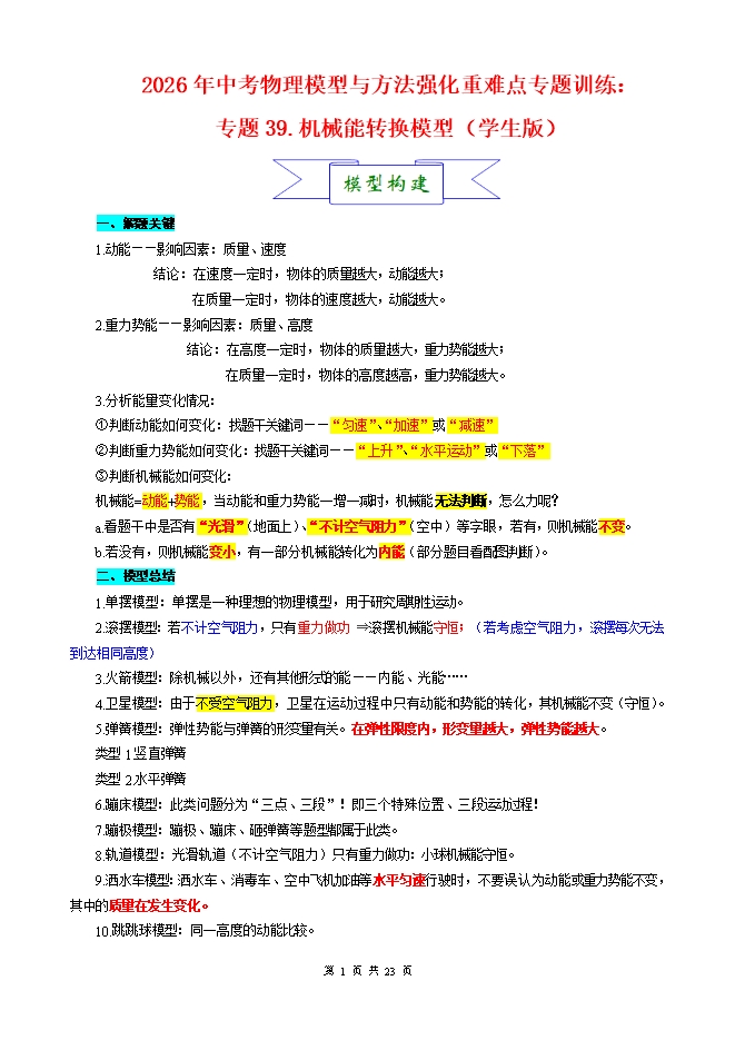 【内容简介】2026年中考物理模型与方法强化重难点专题训练:专题39.机械能转换模型(学生版和教师版)