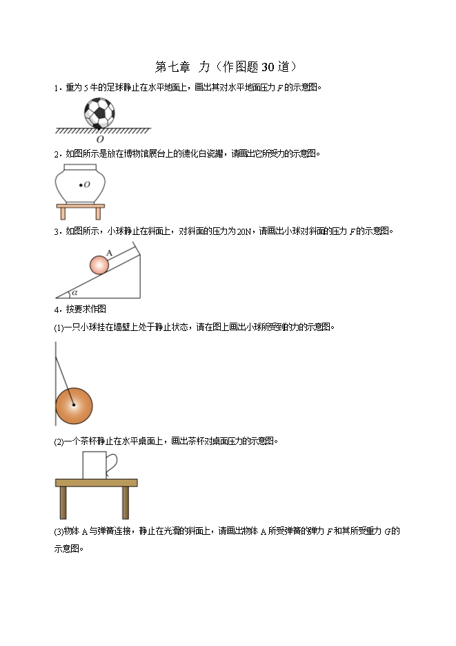 【内容简介】第七章 力(作图题30道)--2025-2026学年人教版八年级物理全册热点题型专练