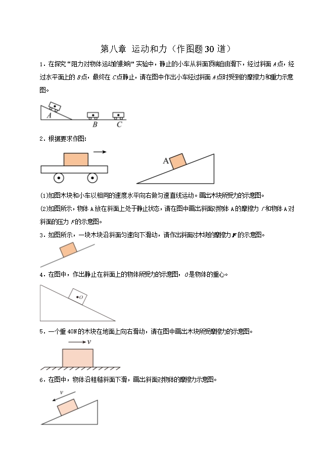 【内容简介】第八章 运动和力(作图题30道)--2025-2026学年人教版八年级物理全册热点题型专练