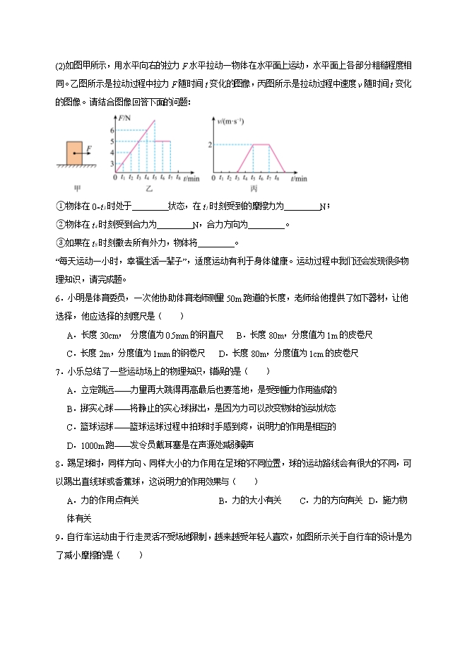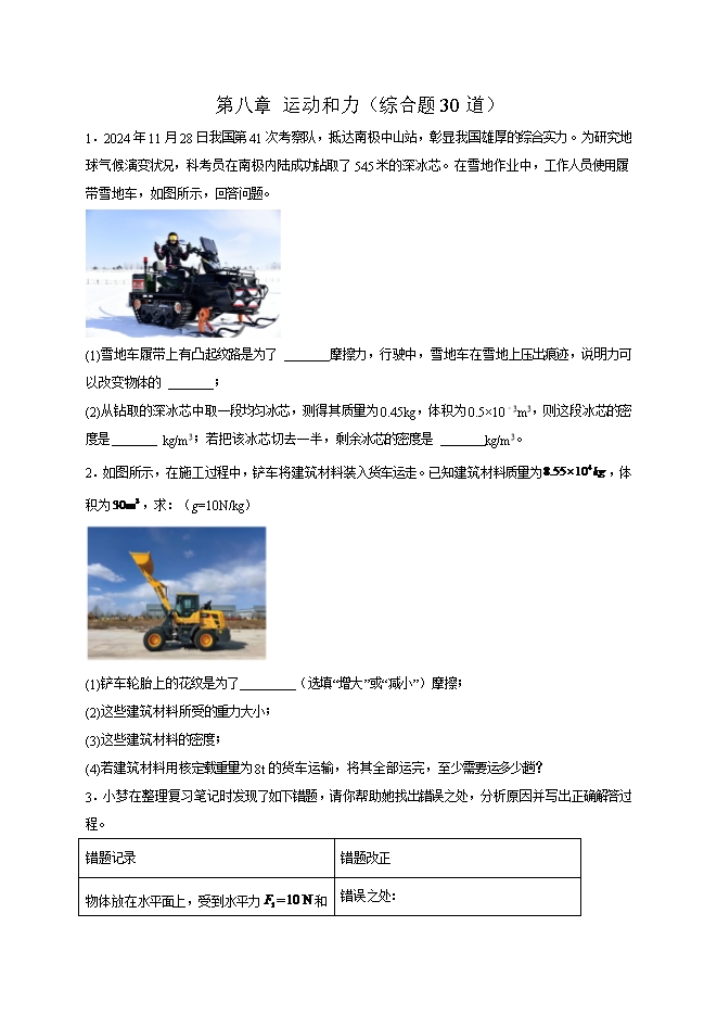【内容简介】第八章 运动和力(综合题30道)--2025-2026学年人教版八年级物理全册热点题型专练