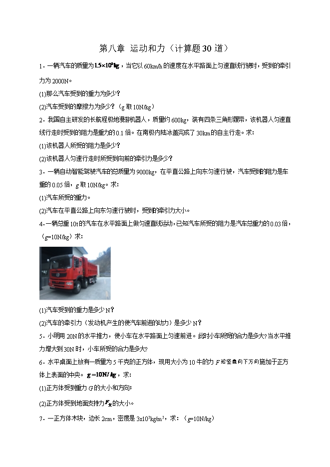 第八章 运动和力(计算题30道)--2025-2026学年人教版八年级物理全册热点题型专练